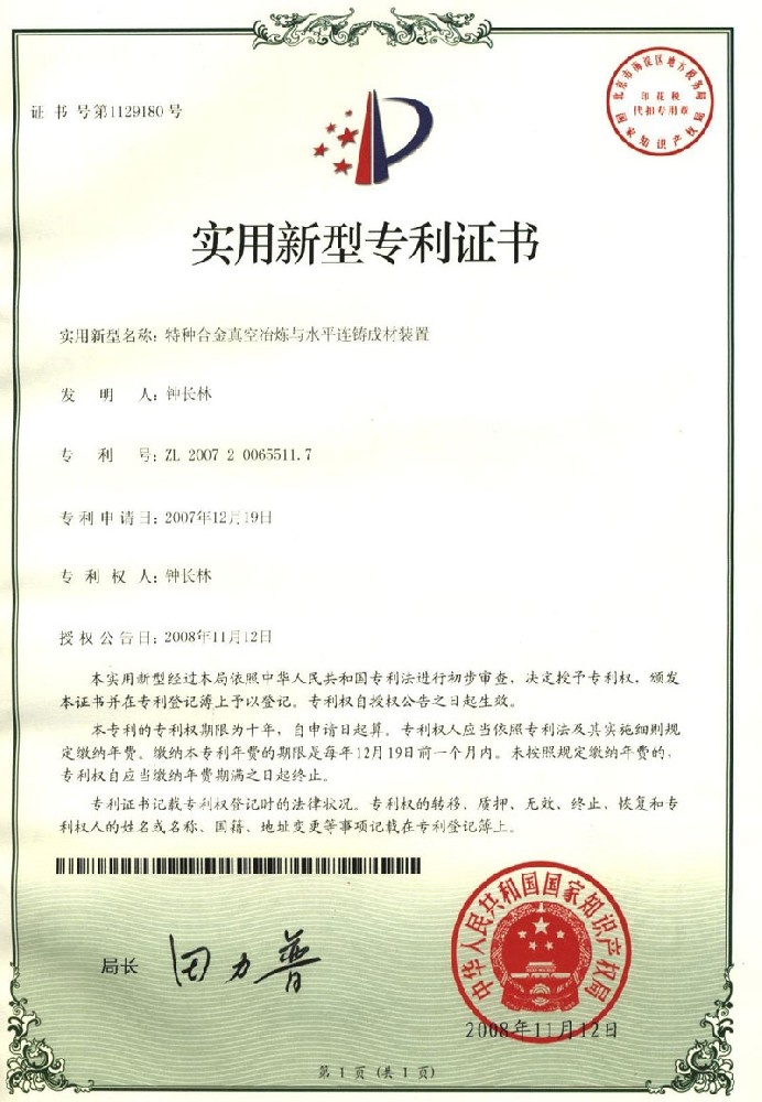 • 實(shí)用新型專(zhuān)利證書(shū)