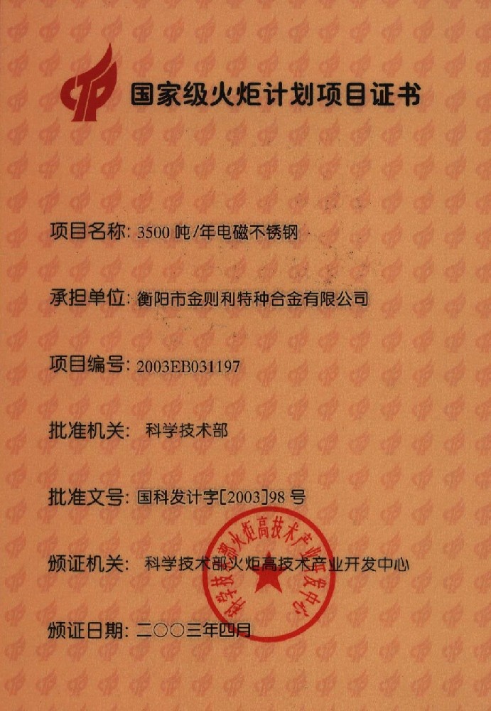 • 國(guó)家級(jí)火炬計(jì)劃項(xiàng)目證書(shū)