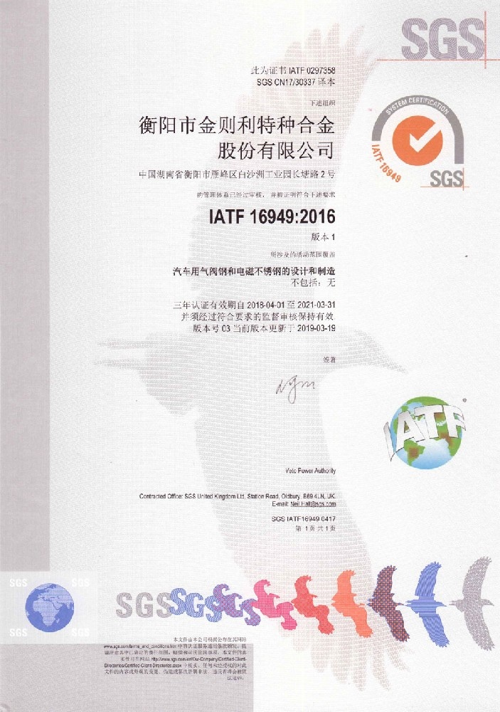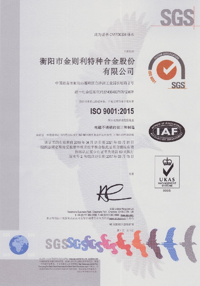 衡陽(yáng)市金則利特種合金股份有限公司成立于一九九九年十二月,注冊(cè)資本人民幣兩千兩百萬(wàn)元。注冊(cè)地址:衡陽(yáng)市雁峰區(qū)白沙洲工業(yè)園長(zhǎng)塘路2號(hào)。公司主營(yíng)耐蝕軟磁合金,為湖南省高新技術(shù)企業(yè)。公司自成立以來(lái),即致力于耐蝕軟磁合金的研發(fā)。 研制出的JL-31(00Cr13si2Pb)、JL-31B(00Cr13si2)、JL-31BS(00Cr13Si2S)、JL-37B(0Cr17Si2)、JL-37(0Cr17···